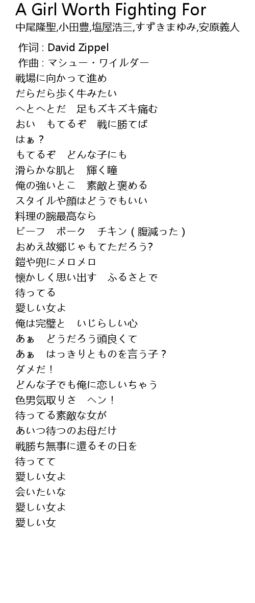 | [00:28.290] | おい もてるぞ 戦に勝てば |