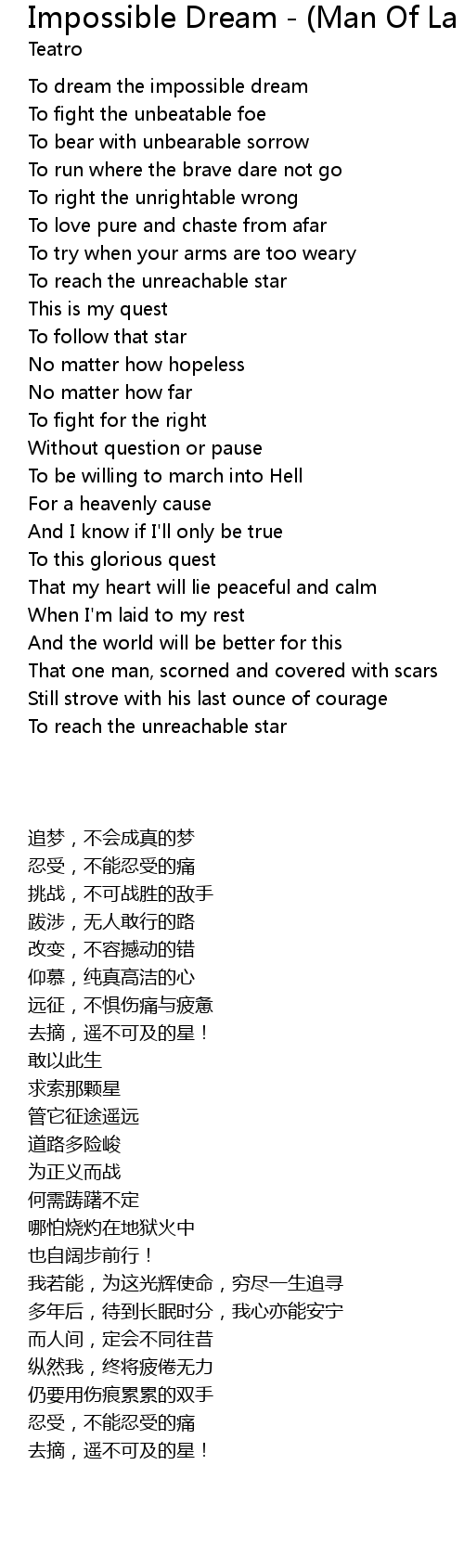 | To dream the impossible dream | |