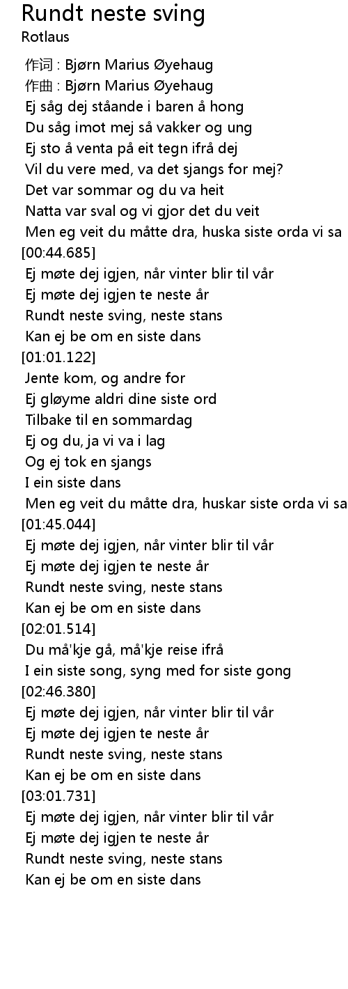 | [01:50.283] | Ej m te dej igjen te neste r |