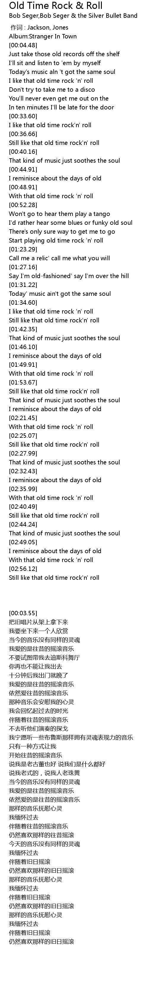 | [01:20.41] | Start playing old time rock ' n' roll |