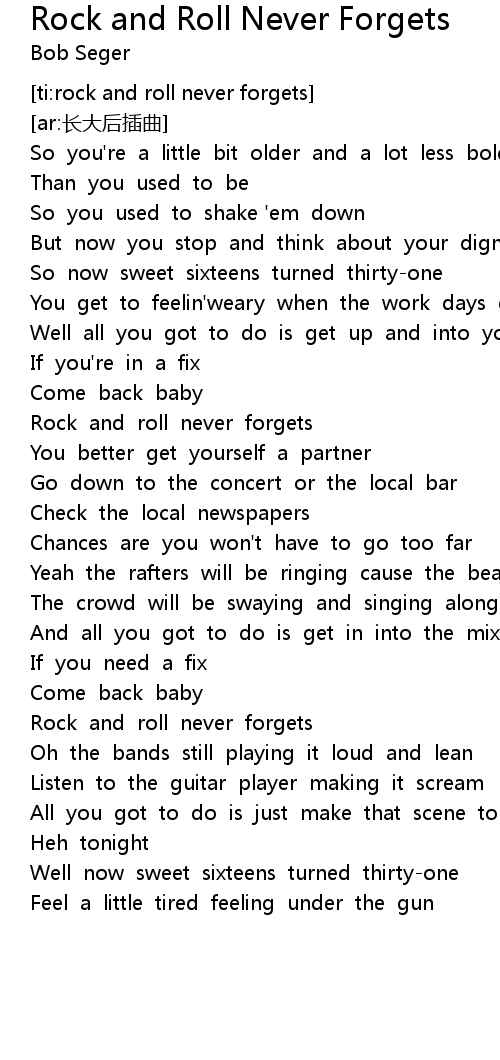 | [01:26.38] | Oh the bands still playing it loud and lean |