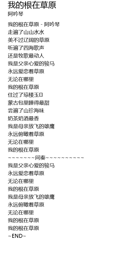 | [00:00.00] | 我的根在草原-阿吟琴 |