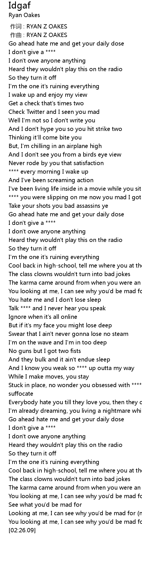 | [00:15.91] | I don't give a **** |