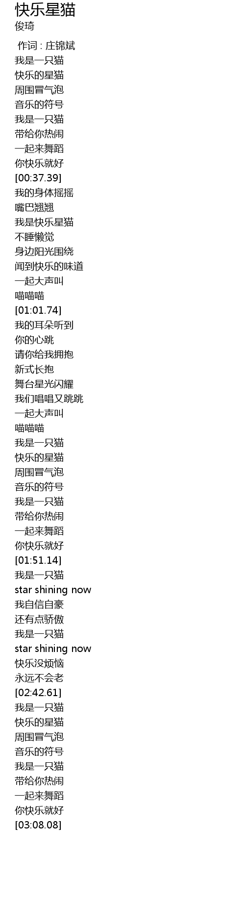 | [00:45.11] | wǒ shì kuài lè xīng māo |