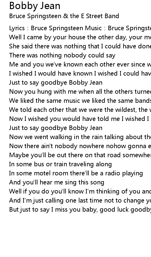 | But just to say I miss you baby, good luck goodbye, Bobby Jean |