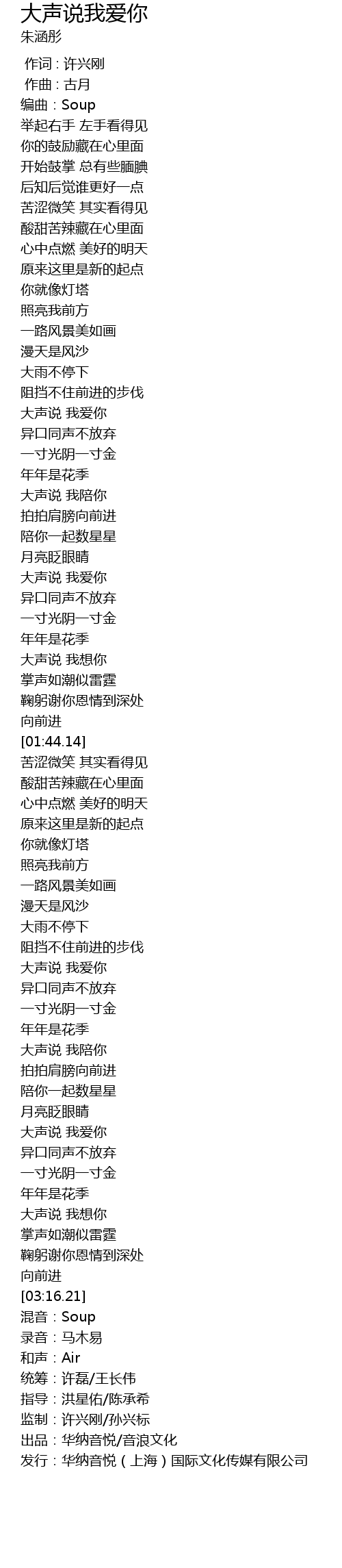 | [01:32.35] | dà shēng shuō wǒ xiǎng nǐ |