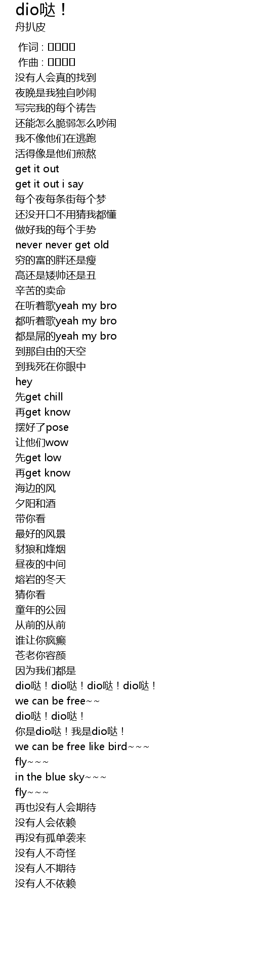 | [01:11.588] | dio哒!dio哒!dio哒!dio哒! |