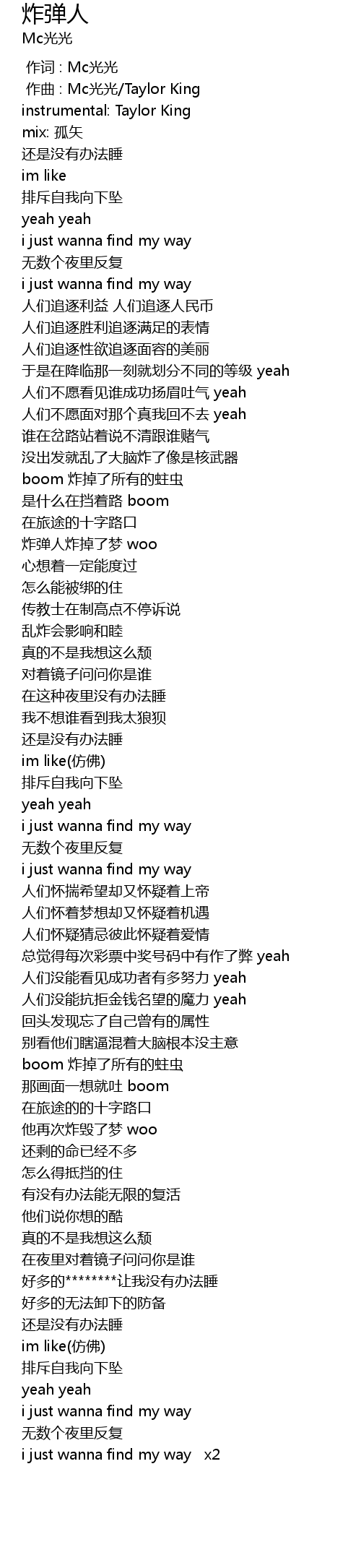 | [00:01.000] | zuo qu : Mc guang guang Taylor King |