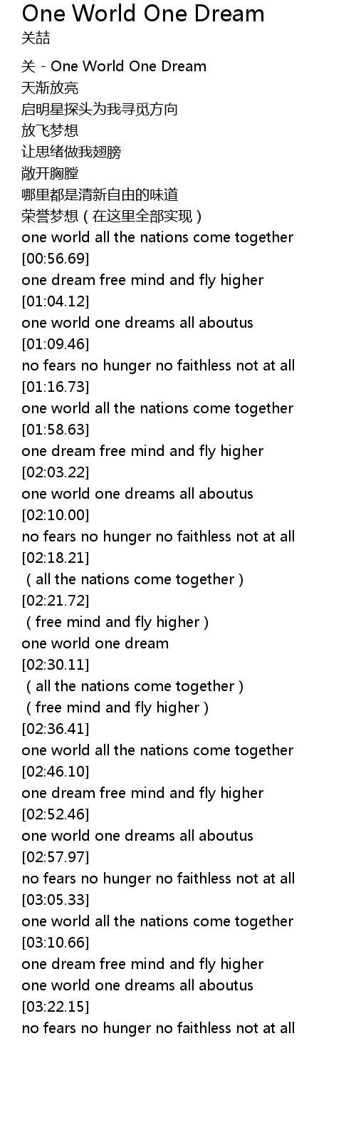 | [00:47.59] | 荣誉梦想(在这里全部实现) |