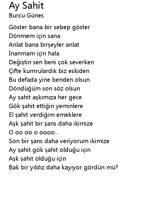 | Ay şahit gök şahit olduğu için | |