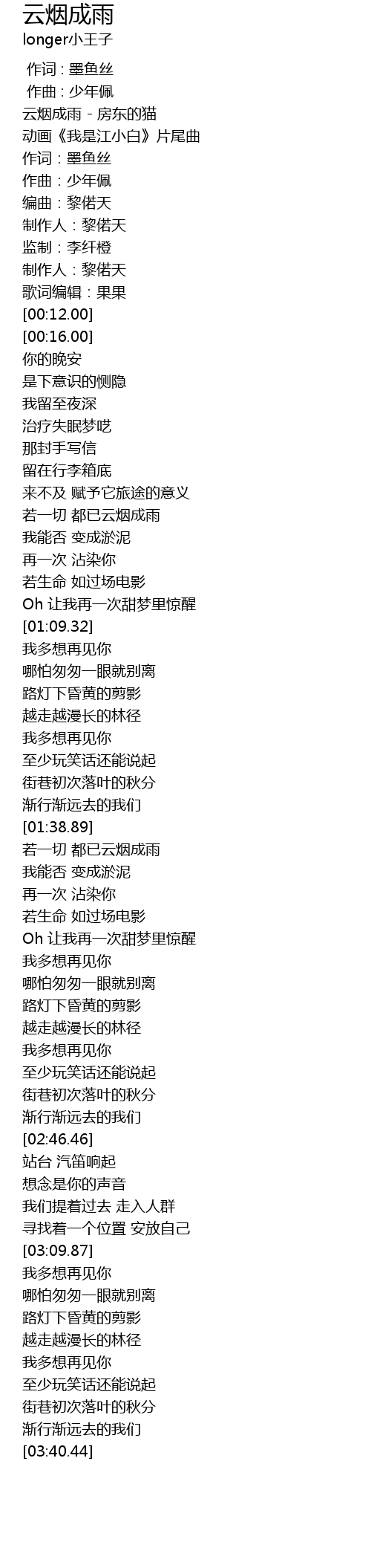 | [00:00.00] | 云烟成雨 - 房东的猫 |