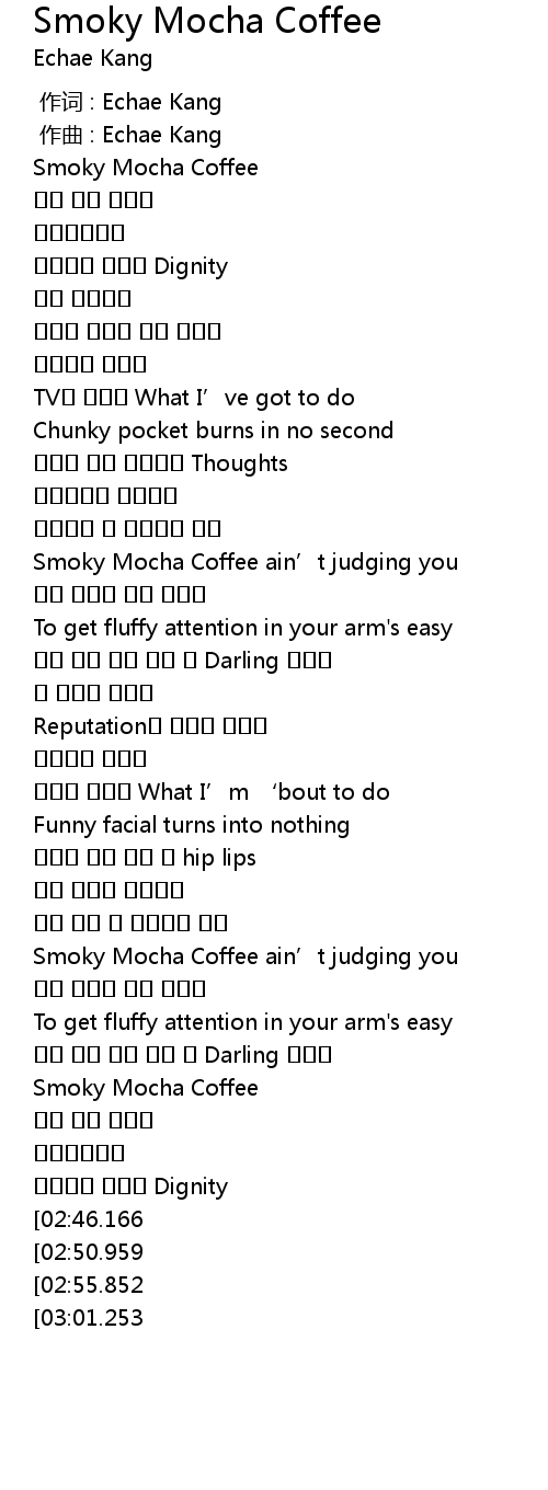 | [02:04.892] | Smoky Mocha Coffee ain' t judging you |