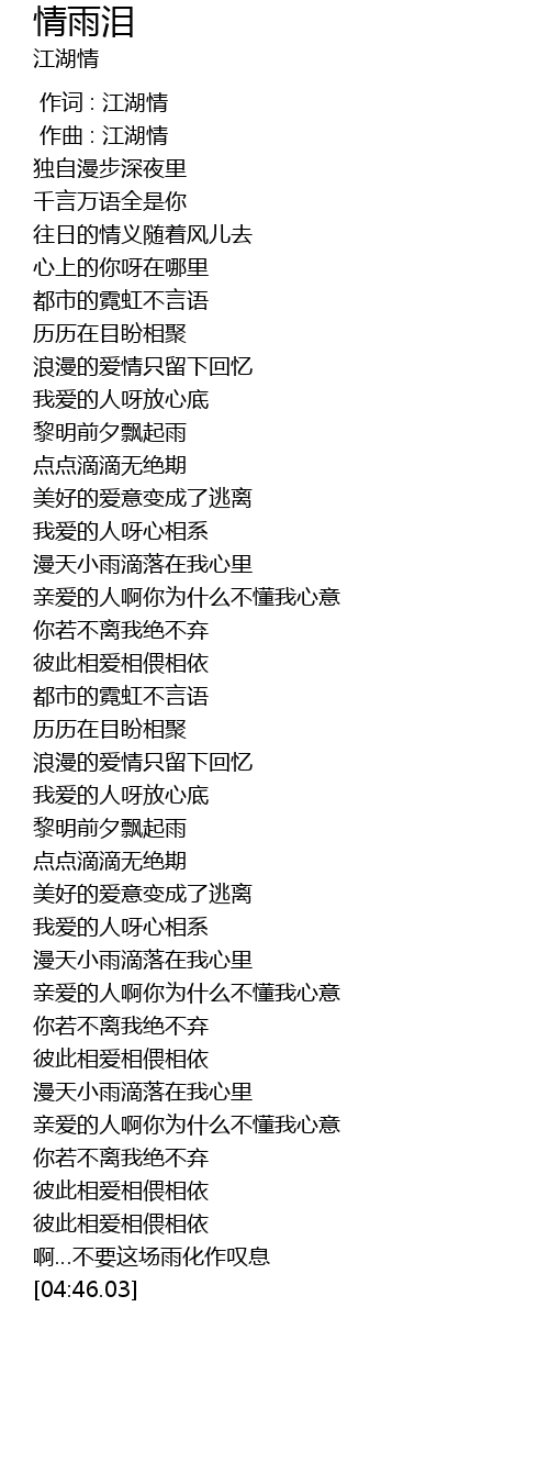 | [03:44.27] | 亲爱的人啊你为什么不懂我心意 |