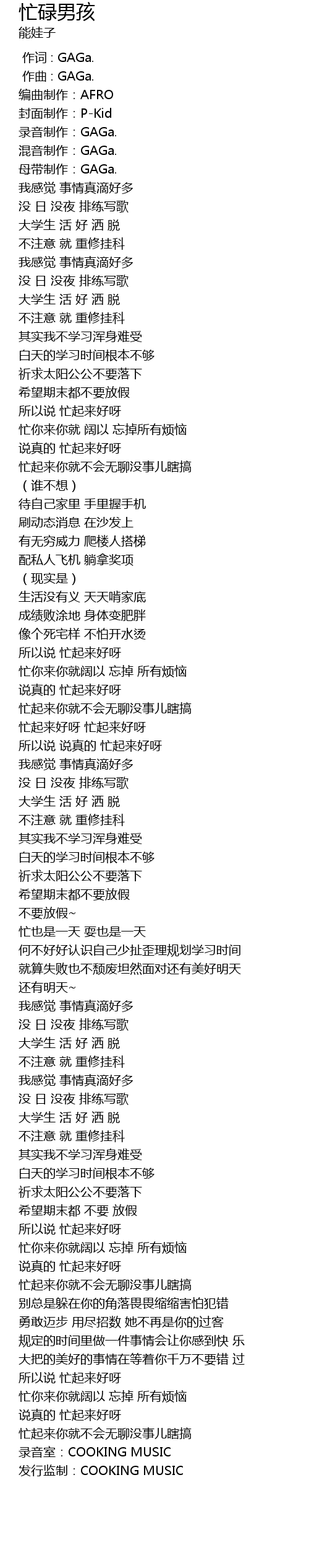 | [00:55.259] | 忙你来你就阔以 忘掉 所有烦恼 |