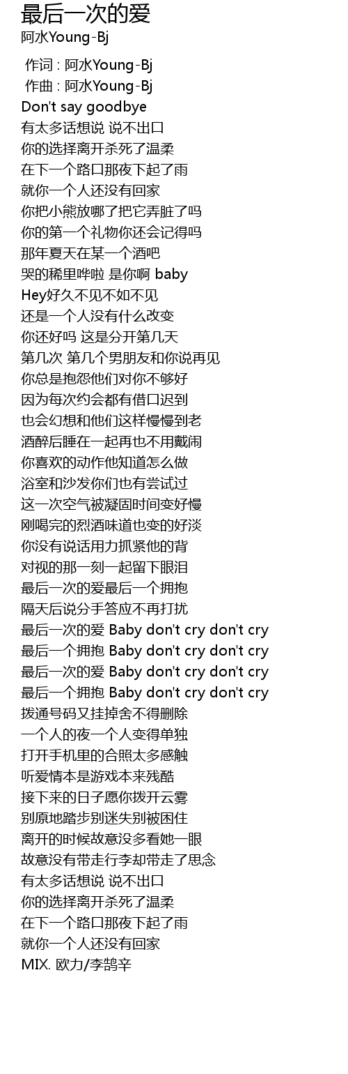 | [02:15.01] | 最后一次的爱 Baby don't cry don't cry |