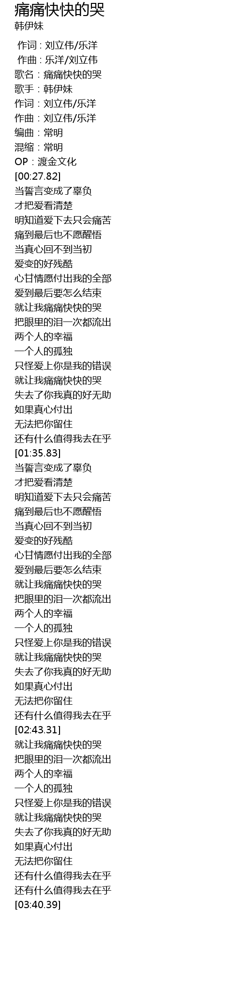 | [00:00.52] | gē míng: tòng tòng kuài kuài de kū |