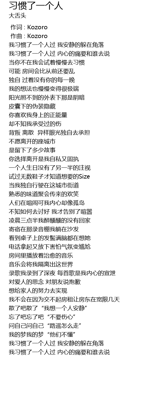 | [02:53.744] | 我习惯了一个人过 内心的痛要和谁去说 |
