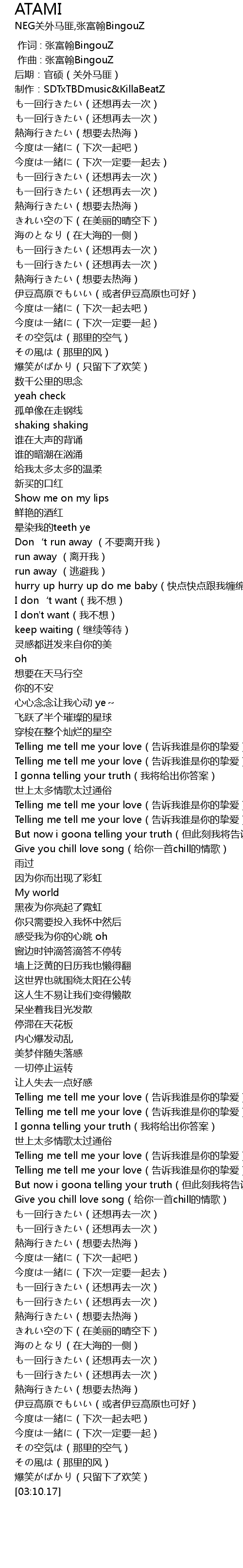| [02:35.49] | But now i goona telling your truth dàn cǐ kè wǒ jiāng gào sù nǐ shí qíng |