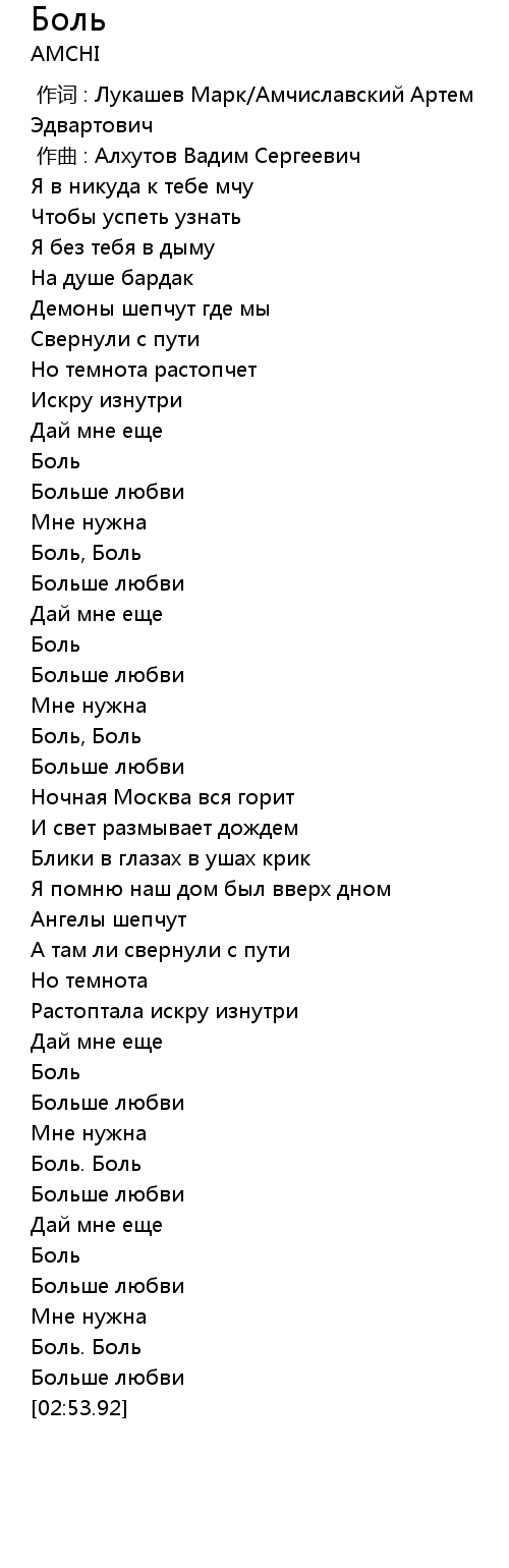 作词 : Лукашев Марк/Амчиславский Артем Эдвартович |
