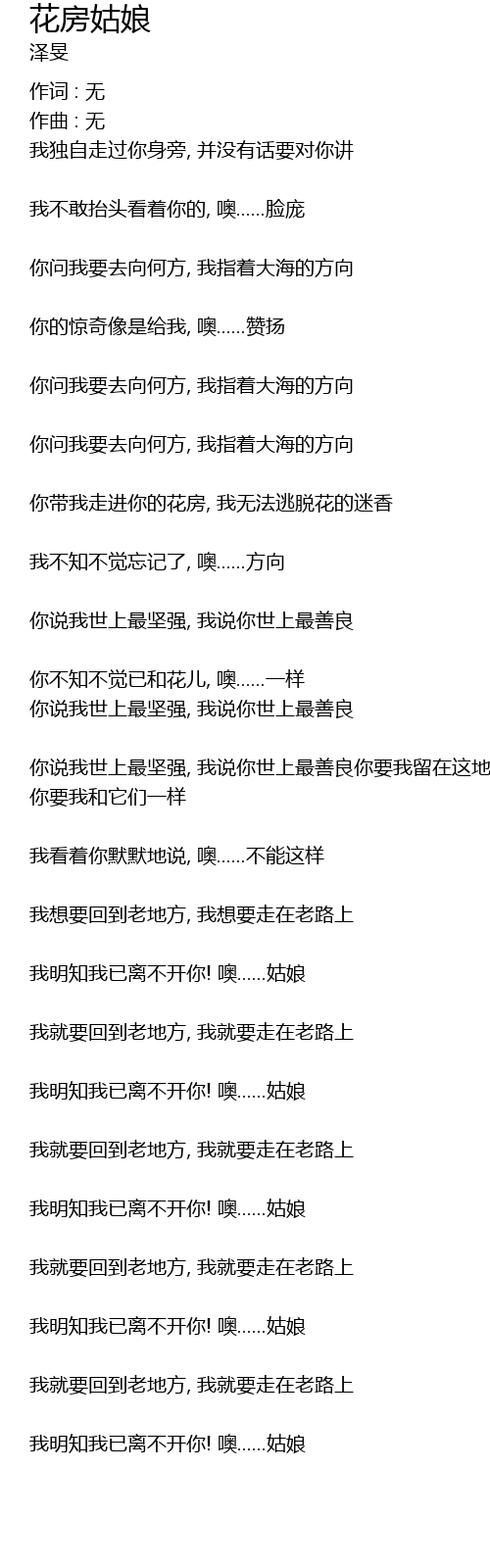 | nǐ dài wǒ zǒu jìn nǐ de huā fáng, wǒ wú fǎ táo tuō huā de mí xiāng | |