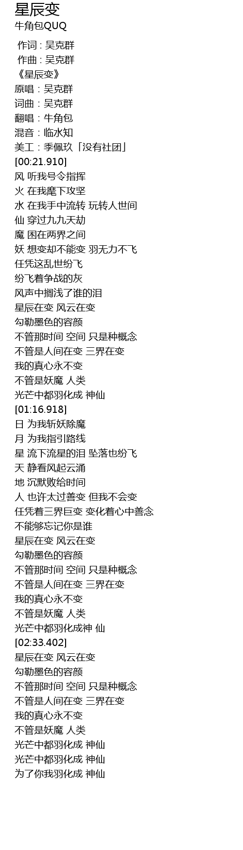 | [02:59.468] | 光芒中都羽化成 神仙 |