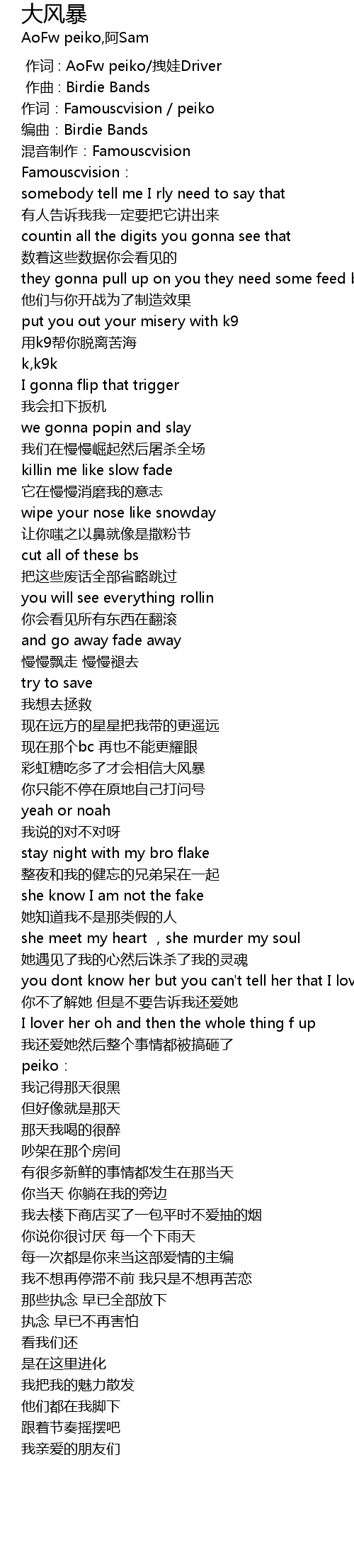 | [00:00.000] | 作词 : AoFw peiko/拽娃Driver |
