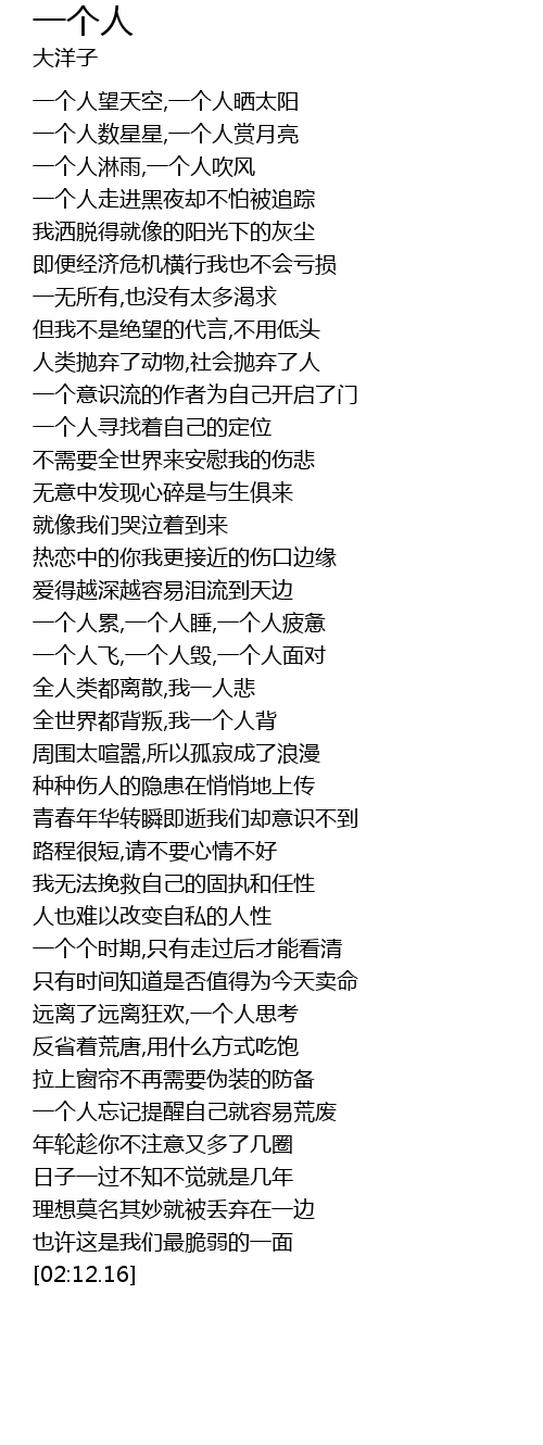 | [00:09.55] | 一个人望天空,一个人晒太阳 |