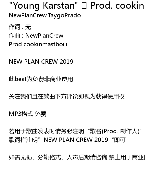 | ruo yong yu ge qu fa biao shi qing wu bi zhu ming" ge ming Prod. zhi zuo ren" ge ci lan zhu ming" NEW PLAN CREW 2019" ji ke | |