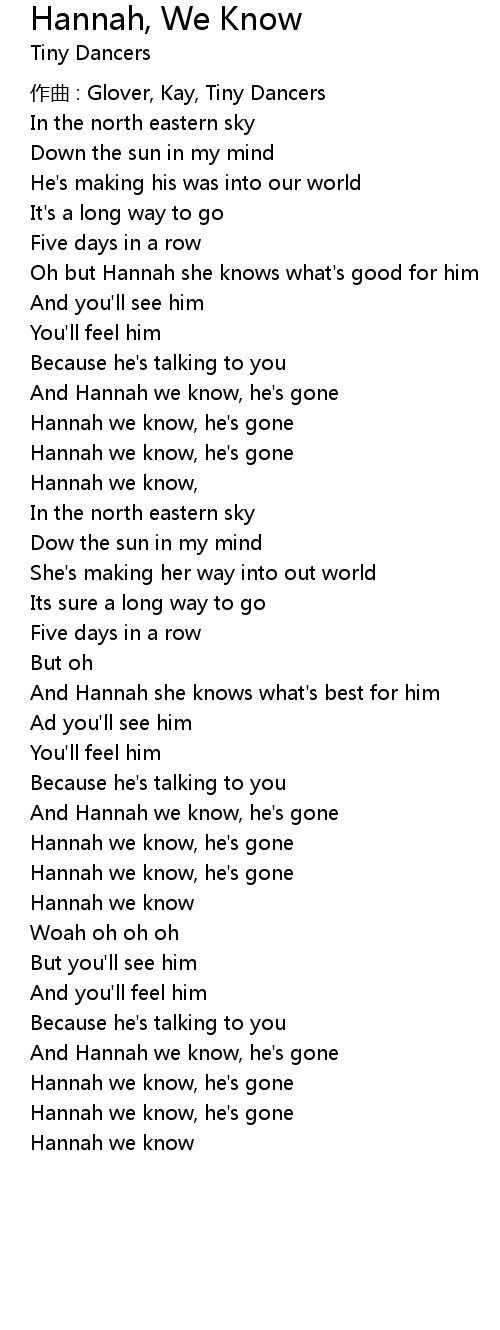 | 作曲 : Glover, Kay, Tiny Dancers | |
