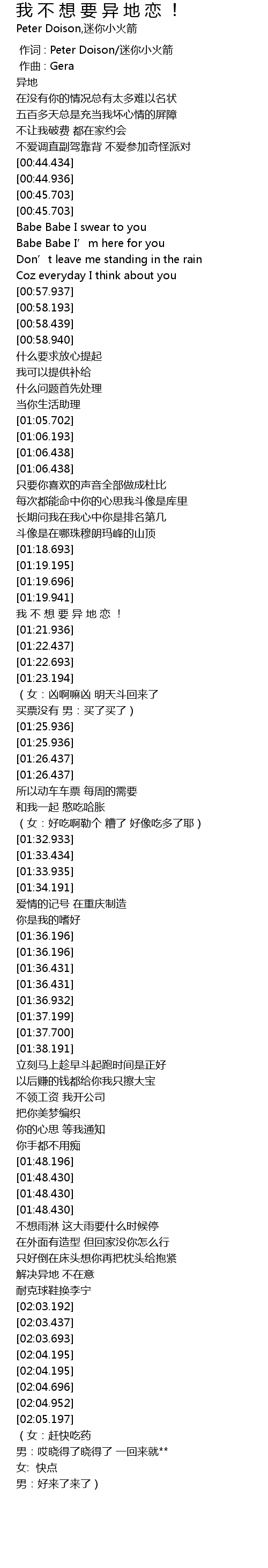| [01:21.701] | 我 不 想 要 异 地 恋 ! |