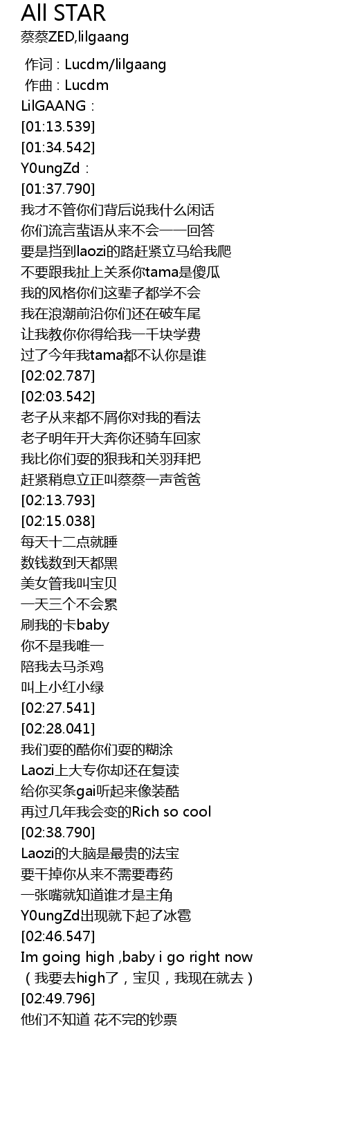 | [00:00.000] | 作词 : Lucdm/lilgaang |