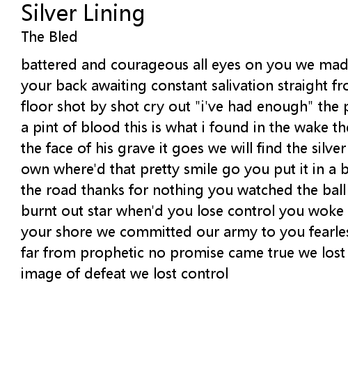 battered and courageous all eyes on you we made you some kind of god of war on your back awaiting constant salivation straight from the snuff film cutting room floor shot by shot cry out "i've had enough" the pictures not done till you lose a pint of blood this is what i found in the wake the message was scratched on the face of his grave it goes we will find the silver lining and make this our own where'd that pretty smile go you put it in a box and left it on the side of the road thanks for nothing you watched the ball drop then made a wish on a burnt out star when'd you lose control you woke up one day with swine all over your shore we committed our army to you fearless leader come see this through far from prophetic no promise came true we lost control your name conjures an image of defeat we lost control |