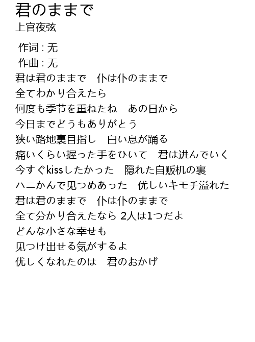 | [00:00.444] | 君は君のままで 仆は仆のままで |