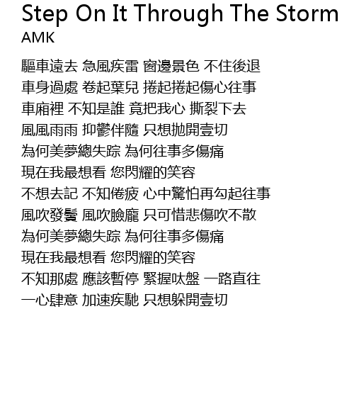 | [00:14.000] | 驅車遠去 急風疾雷 窗邊景色 不住後退 |
