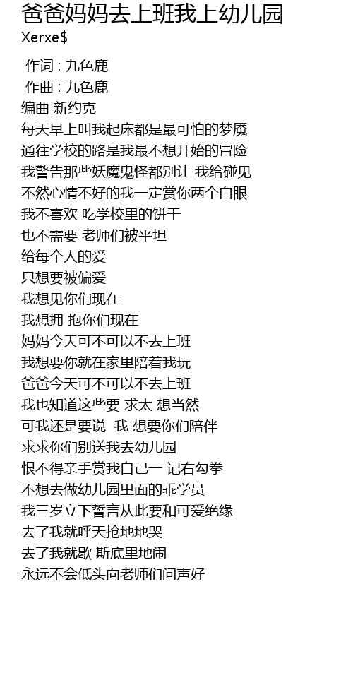 | Song | 爸爸妈妈去上班我上幼儿园 |