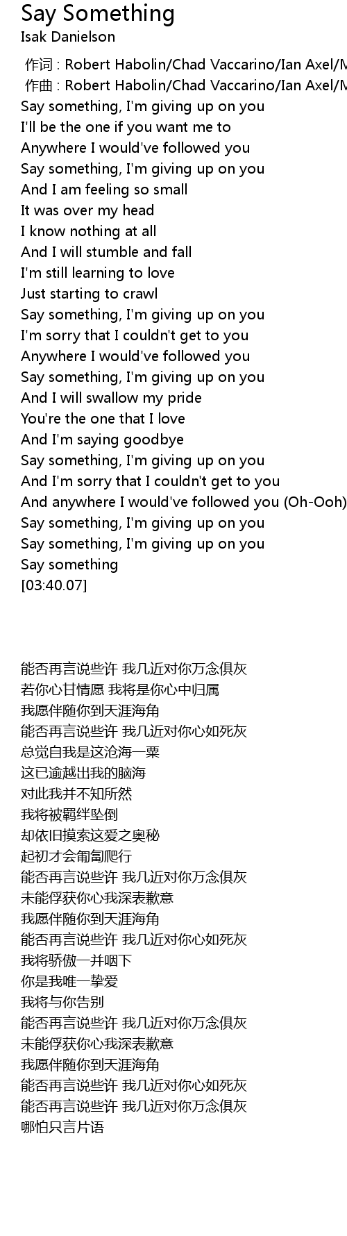 | [00:00.00] | 作词 : Robert Habolin/Chad Vaccarino/Ian Axel/Mike Cambell |