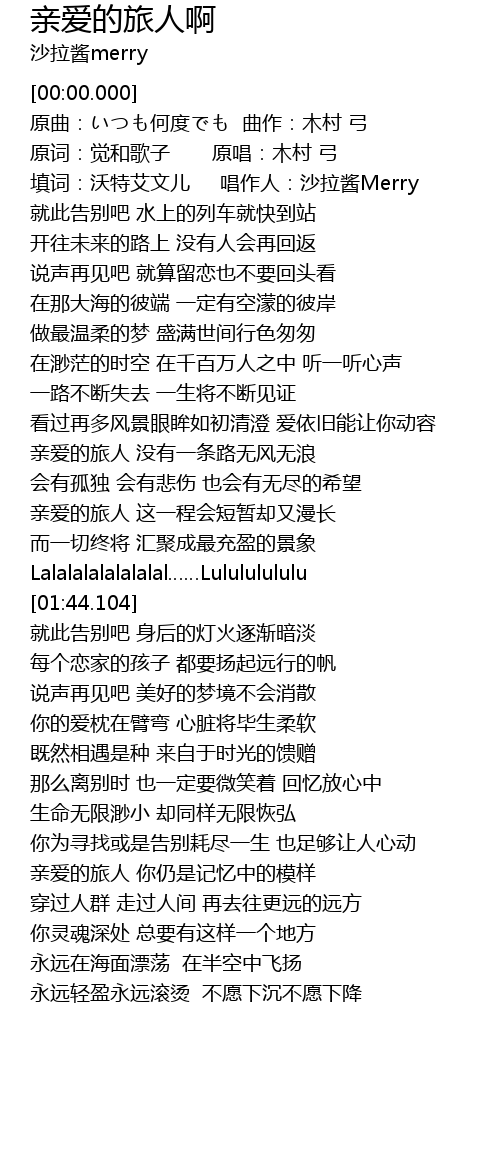 | Song | 亲爱的旅人啊 |