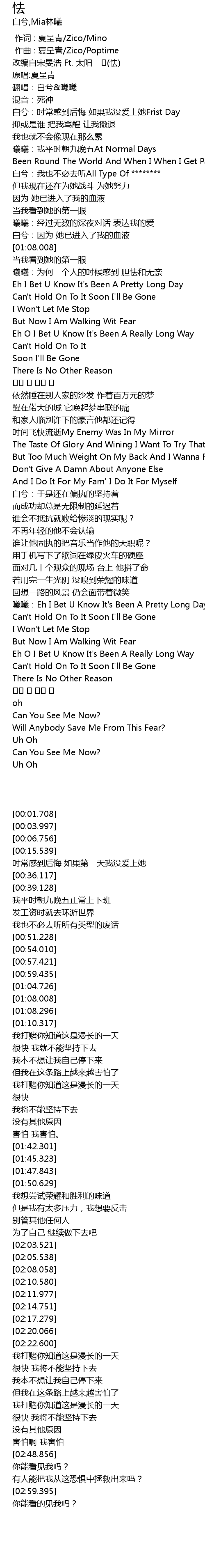 | [00:00.000] | 作词 : 夏呈青/Zico/Mino |
