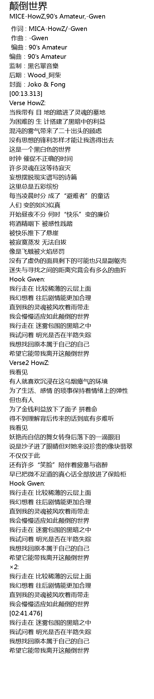 | [00:00.000] | 作词 : MICA-HowZ/-Gwen |