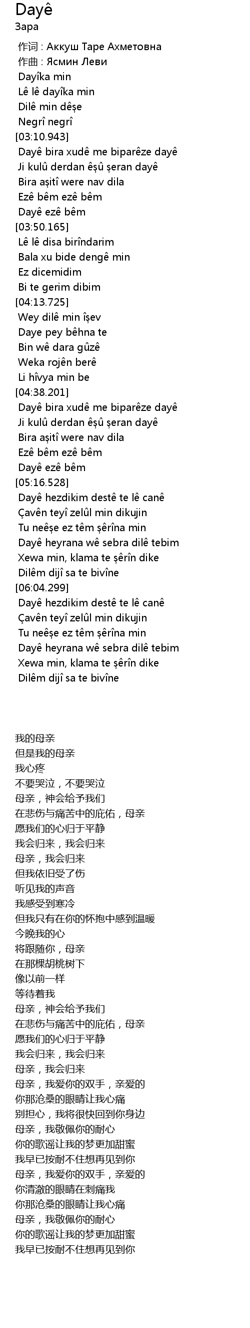| [03:13.148] | Dayê bira xudê me biparêze dayê |