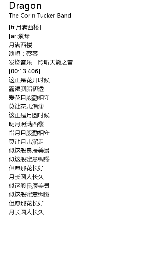 | [01:11.899] | míng yuè zhào mǎn xī lóu |