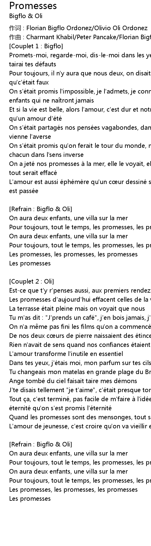 | Song | Promesses |