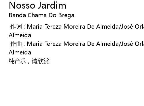 | [00:01.00] | 作曲 : Maria Tereza Moreira De Almeida/José Orlando Santos De Almeida |