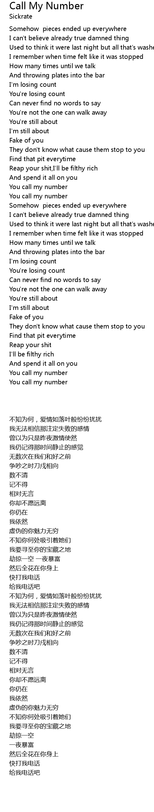You call my number |