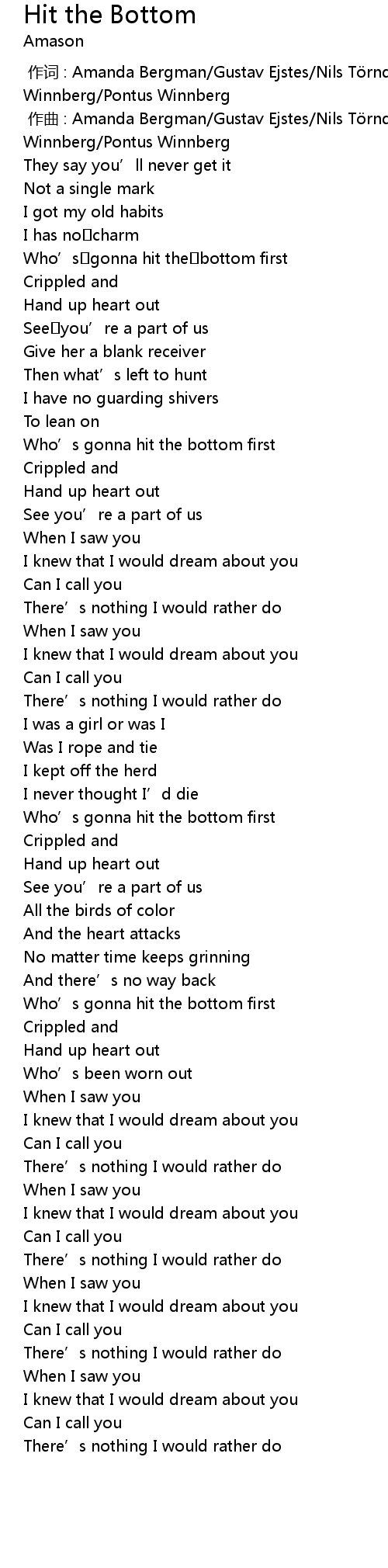 | [00:42.33] | Who' s gonna hit the bottom first |
