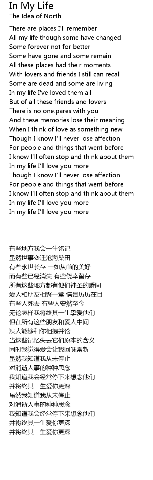 In my life I'll love you more |