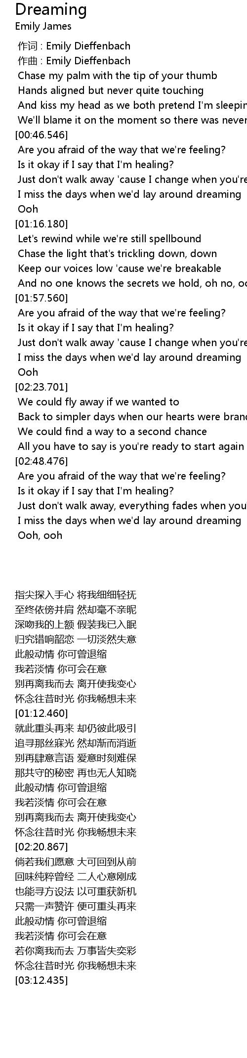 | [00:00.000] | 作词 : Emily Dieffenbach |
