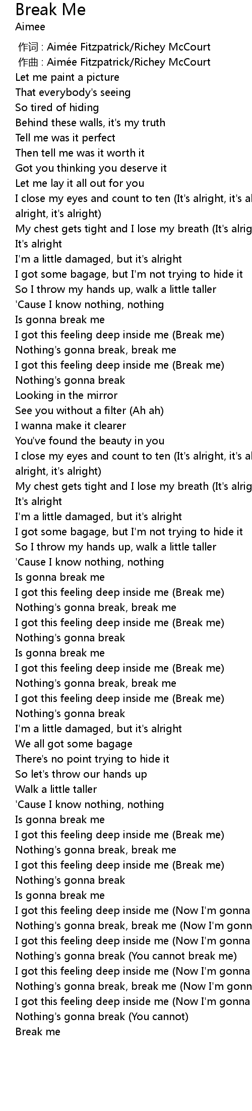 | [02:43.697] | I got this feeling deep inside me (Break me) |