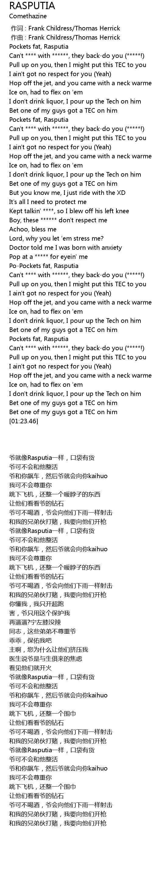 | [00:52.86] | Po-Pockets fat, Rasputia |