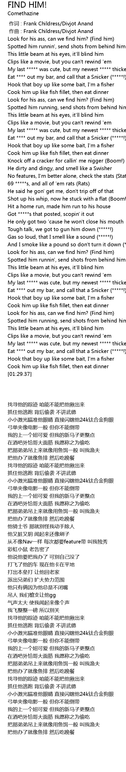 | [01:01.43] | Look for his ass, can we find him? (Find him) |